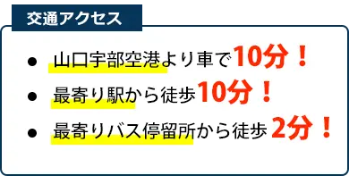 山口県のほぼ中心に位置しているので、県内主要都市*から約90分以内でお越しいただけます。