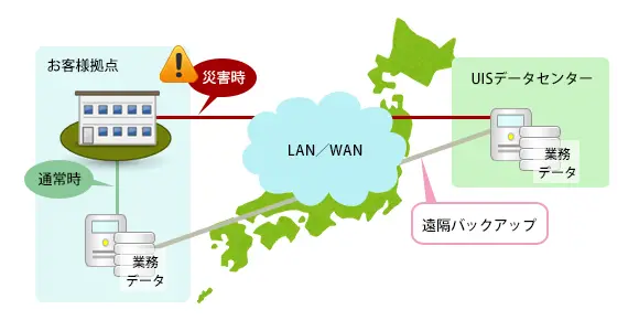- 災害時、システム障害時における、お客様データの消失を防ぎます。