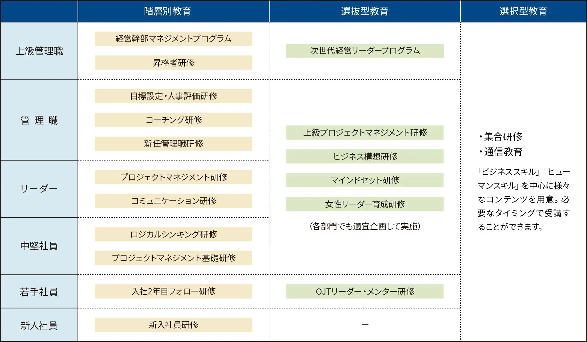 - 全社教育(階層別・選抜型・選択型)